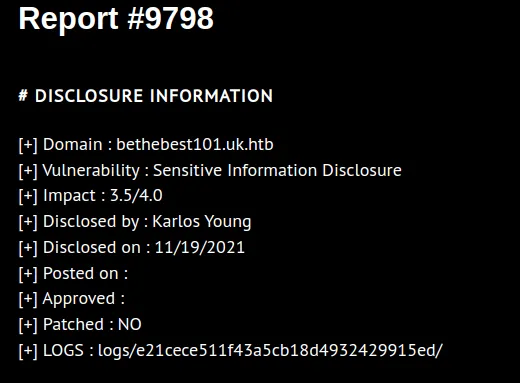 Oddly enough, report #9798 has a entry “LOGS” that stands our and which redirects to a blank page.