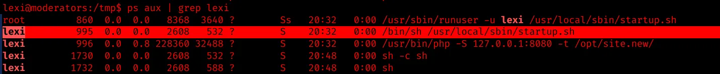 To establish a more stable shell, copy our SSH public key to /home/lexi/.ssh/authorized_keys and login via SSH.