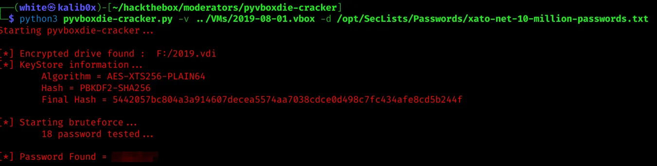 To crack the password of the LUKS encrypted volume, we need to use another tool called bruteforce-luks: See here: https://github.com/glv2/bruteforce-luks