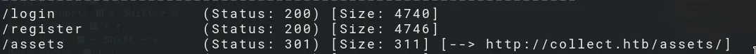 Browse the website and we find that the server leaks the hostname collect.htb, add it to our hosts file.