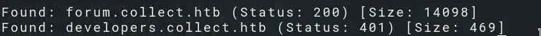 We can’t access developers.collect.htb yet, because it requires Basic auth. (401: Authorization required)