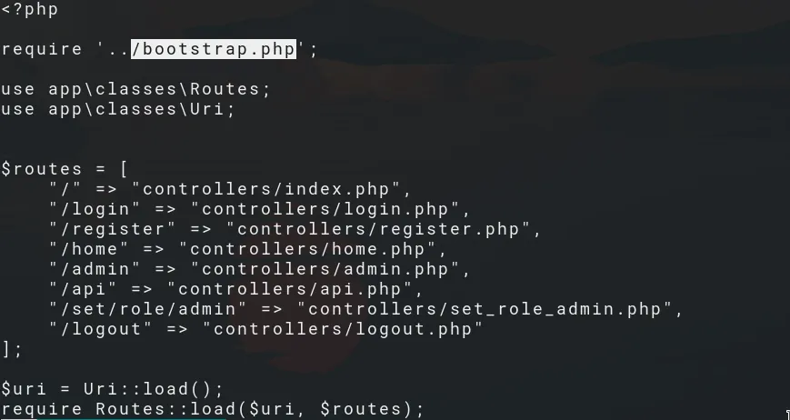 Index.php includes a file called bootstrap.php, let’s grab this config file as well: