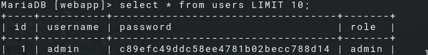 And we find the password hash of admin.