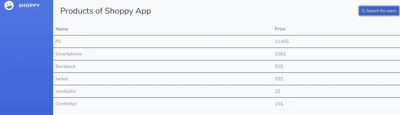 Enter the same payload into the search field and retrieve a list of users: