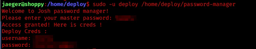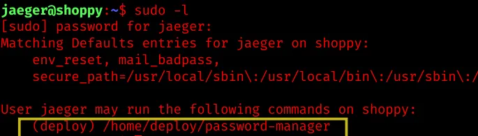 User “jaeger” is allowed to run /home/deploy/password-manager: