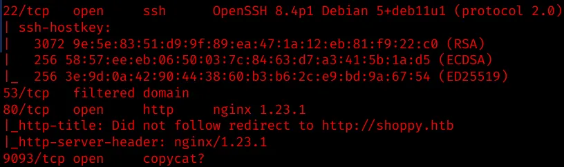 - port 80: nginx 1.23.1: redirects to http://shoppy.htb