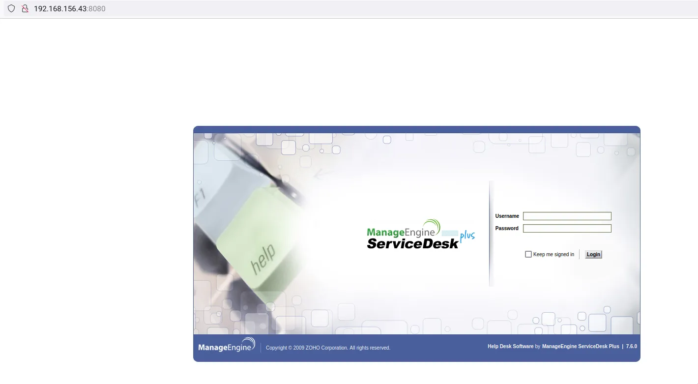 There is a login panel for ManageEngine ServiceDesk Plus:
