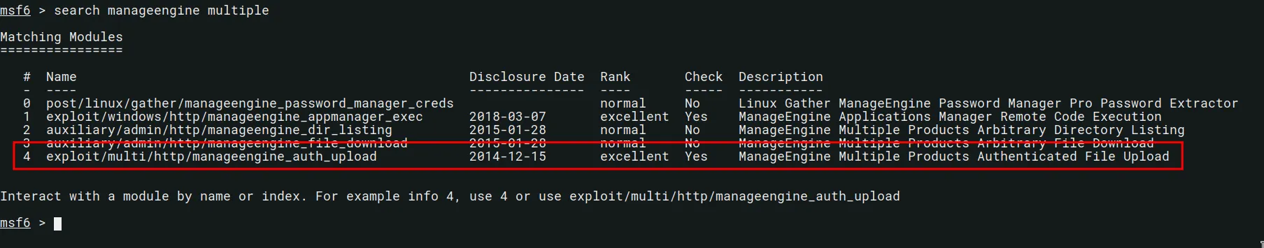 msf6 > search manageengine multiple