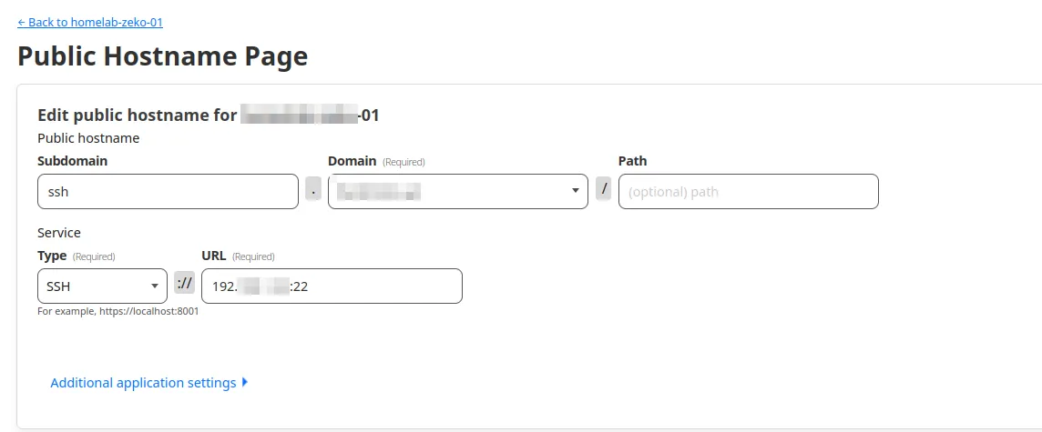 Specify the subdomain used to access SSH and the domain. (here: ssh.example.xyz)